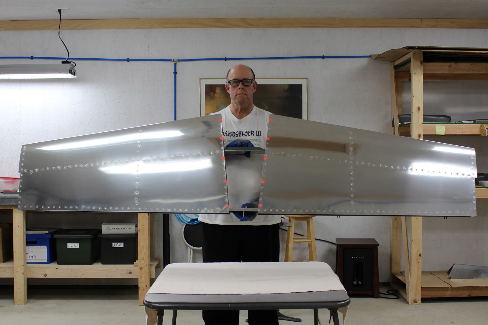 In the meantime, I went ahead and finished skinning the left side, which went smoothly. I learned how to buck the small rivets along the front spar by feel, pressing the flat side of the bucking bar against the shop head with just two fingertips. There were a few that I needed to touch up, but no mistakes or drill-outs.
