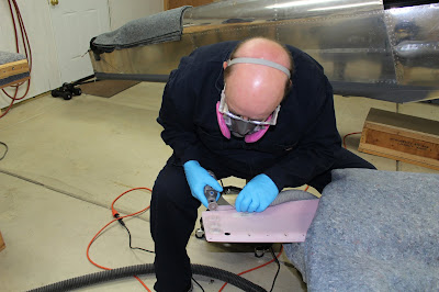 I was at the point on the canopy where it would be advantageous to have the canopy firmly attached to the frame, properly aligned, without having to use clecos or more temporary rivets. That would allow independent work on the skirts to refine the fit without having the canopy shift or flex, causing misalignment of the rivet holes. Refining the fit of the skirts had required refilling and redrilling of the rivet holes in the skirt and in the process some of the rivet holes in the canopy were altered slightly. That in itself isn't a problem, but the altered holes needed to be smoothed out before riveting. I didn't want to take the chance of have another stress riser introduced during refitting and riveting that might cause the dreaded canopy crack. Removing the temporary rivets the first time didn't always go smoothly; rivets spun during drilling and a couple holes ended up enlarged enough that they wouldn't hold a #30 cleco firmly. I really wanted to use a structural adhesive (Sikaflex or equivalent) to bond the canopy to the frame permanently while I worked on the skirts separately prior to riveting them in place. Frequent refitting and final assembly of the skirts would leave the canopy unaffected. Lengthy product research on adhesives and sealant that can be used on plexiglass narrowed my choices down to either Sikaflex or 3M AC-251 Black Aerospace Sealant. Sikaflex has been used successfully by many builders, but the application process is a complicated procedure involving careful masking and applying their special Primer and Aktivator (their spelling) prior to the main sealant. Trying to find a single source for all three products proved to be difficult at best. The 3M AC-251 Aerospace Sealant can be used as a stand-alone product, but but bonding is enhanced when using their AC-137 Adhesive Promoter, available in clear and red. Once again, trying to find a source for both materials and was very frustrating. After going through a maze of departments at 3M, I finally reached salesman Cory Gross who sent me a list of distributors and also answered some questions regarding supply. Going through the list of distributors, I learned that most of them are large companies (like Boeing) that will only sell the products in huge lots. Two names I knew and trusted were Aircraft Spruce and SkyGeek. SkyGeek offered combo packs of both the AC-251 and AC-137 in the quantities I needed, but they could only be ordered with a lead time of more than a month. Both suppliers could sell me the AC-251, but Aircraft Spruce did not sell the AC-137 and SkyGeek had only sold it on demand, requiring the long lead time. I decided to order some AC-251 from Aircraft Spruce; initially planning to use it alone. I removed the canopy from the frame, put it in its cradle, smoothed all rivet holes inside and out, prepped the mating surfaces and re-masked the entire inside of the canopy prior to bonding. But after a lot of thought I realized I didn't want to risk applying the AC-251 only to have the bond fail before the assembly was riveted permanently. I needed to consult with 3M some more. Winding through the corporate maze again got me to the voicemail of Aerospace Application Consultant Aubrey Gitter. She called me back within a few hours and gave me detailed product information regarding AC-251 adhesion specifications with and without using the AC-137 adhesion promoter. Bonding strength is more than tripled when using AC-137. I decided to order the required quantity of AC-137 from SkyGeek; it won't arrive until early December.
